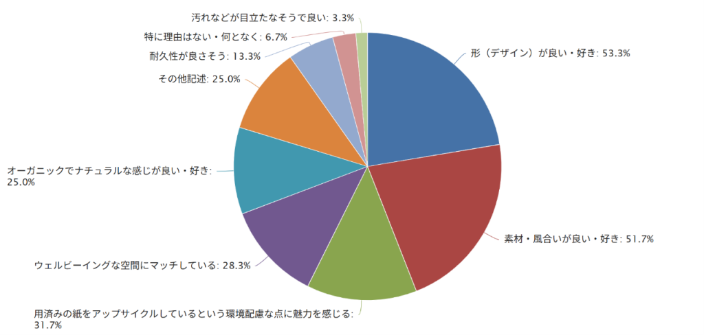 デザインや素材・風合いを好むという選択がいずれも50%超。